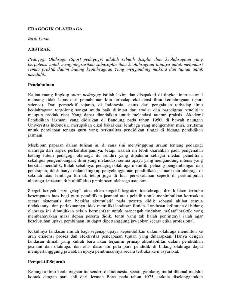 Meskipun rumusan lingkup unsur pedagogi olahraga sport pedagogy beragam pada berbagai negara karena terkait. 21 Kajian Teori A. Oleh Muhammad Reza - Juni 18 2021.